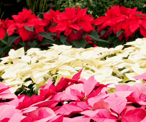 Poinsettias love a well-lit spot in bright sunlight. Be sure to place your poinsettia in a place where night temperatures do not drop below 50–60°F. Learn more about caring for poinsettias and other winter favorites in this article on Holiday Gardening and Decorating.