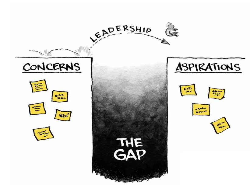 Using the book’s five-part framework, Bradley walked participants through each stage of the leadership process. The first step is identifying the gap between where things are now and where they need to be. This gap represents the difference between current reality and the desired future. Leadership begins with acknowledging that gap and taking action to close it. Noting that dissatisfaction with the present often becomes the spark that ignites meaningful progress and inspires people to act.