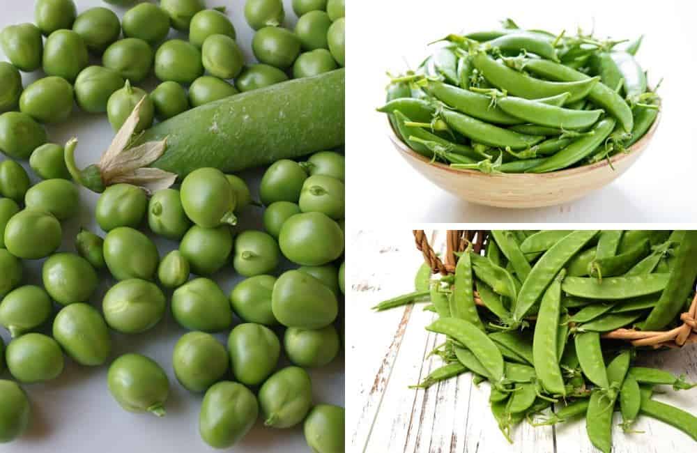 Sugar snap peas and snow peas share identical nutritional profiles and are less starchy than a typical shelled pea.