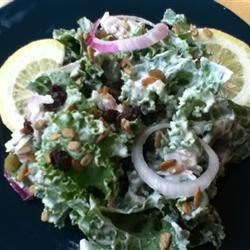 Take a trip to the Gateway Farmers Market downtown and get your farm fresh kale for this Creamy Kale and Nut Salad, which has less than 100 calories per serving, over 5,000 I.U. of Vitamin A and only 65 mg sodium. Make it up a few hours ahead of time and let the flavors blend for the best salad. It mimics a creamy broccoli salad.