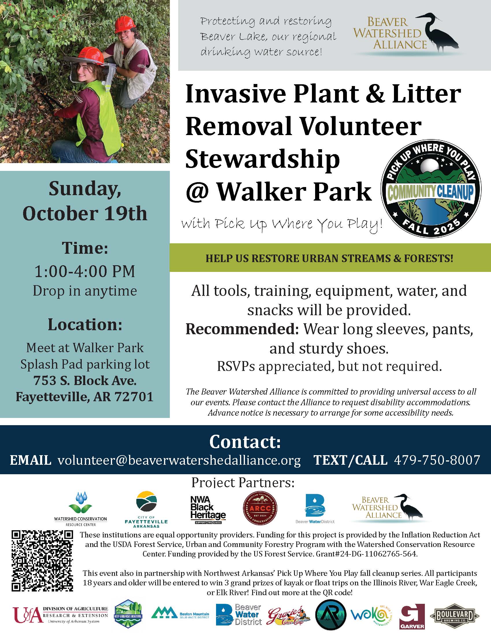 Sunday, Oct. 19 - Walker Park in Fayetteville, 1 p.m.-4 p.m. Invasive plant removal and litter cleanup! (See flyer for more info)