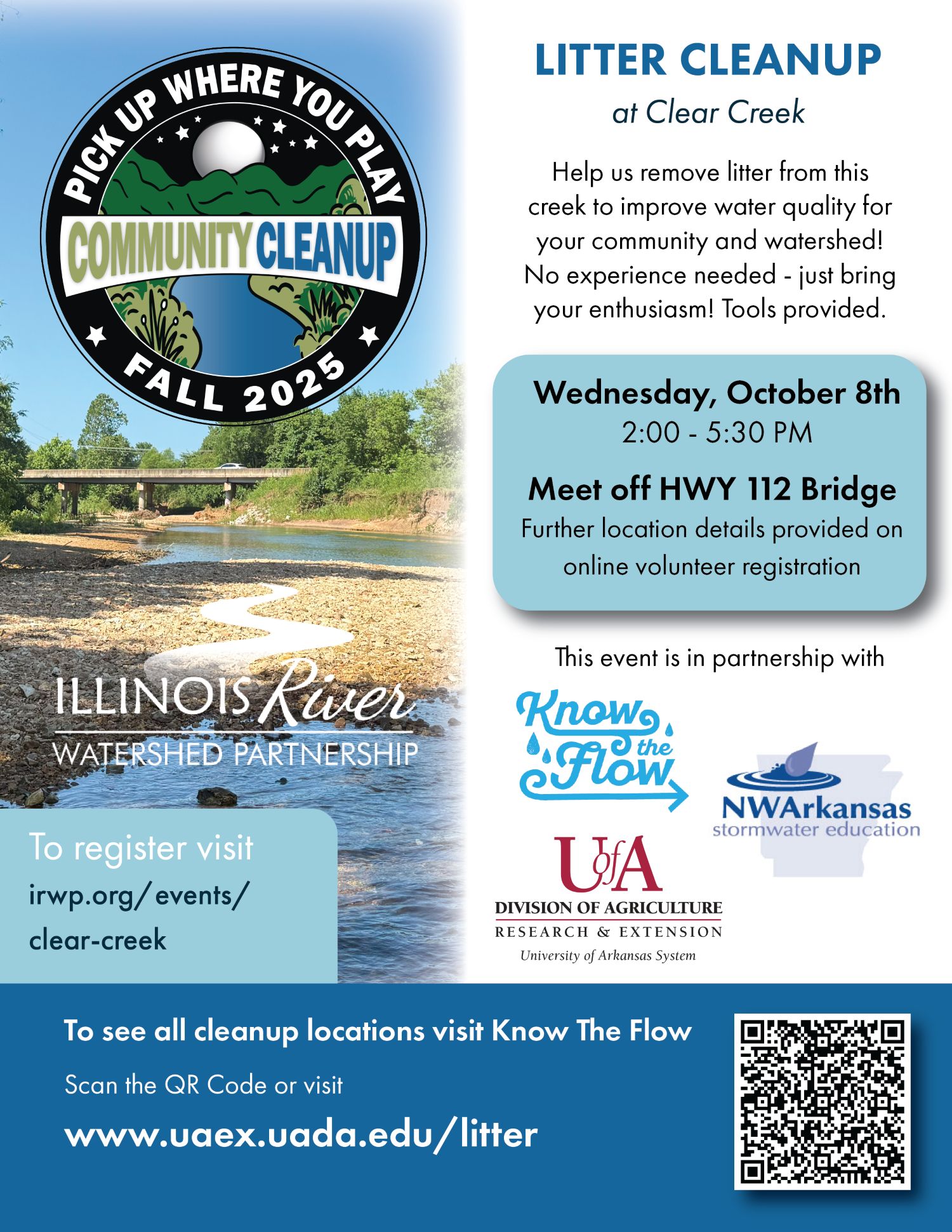 Wednesday, Oct. 8 - Hwy 112 Bridge in Tontitown/Johnson - 2 p.m. - 5:30 p.m. (Sign up here. See flyer for more info.)