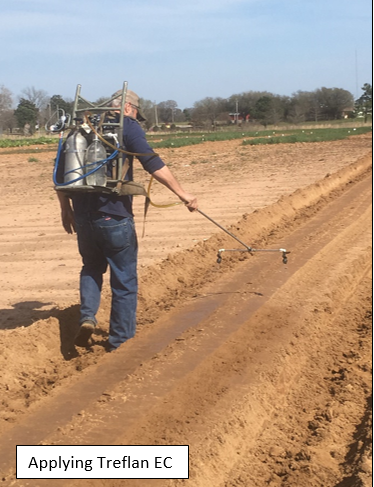 Pre-emergent herbicide Treflan 4 EC was applied at a rate of one pint/acre on top