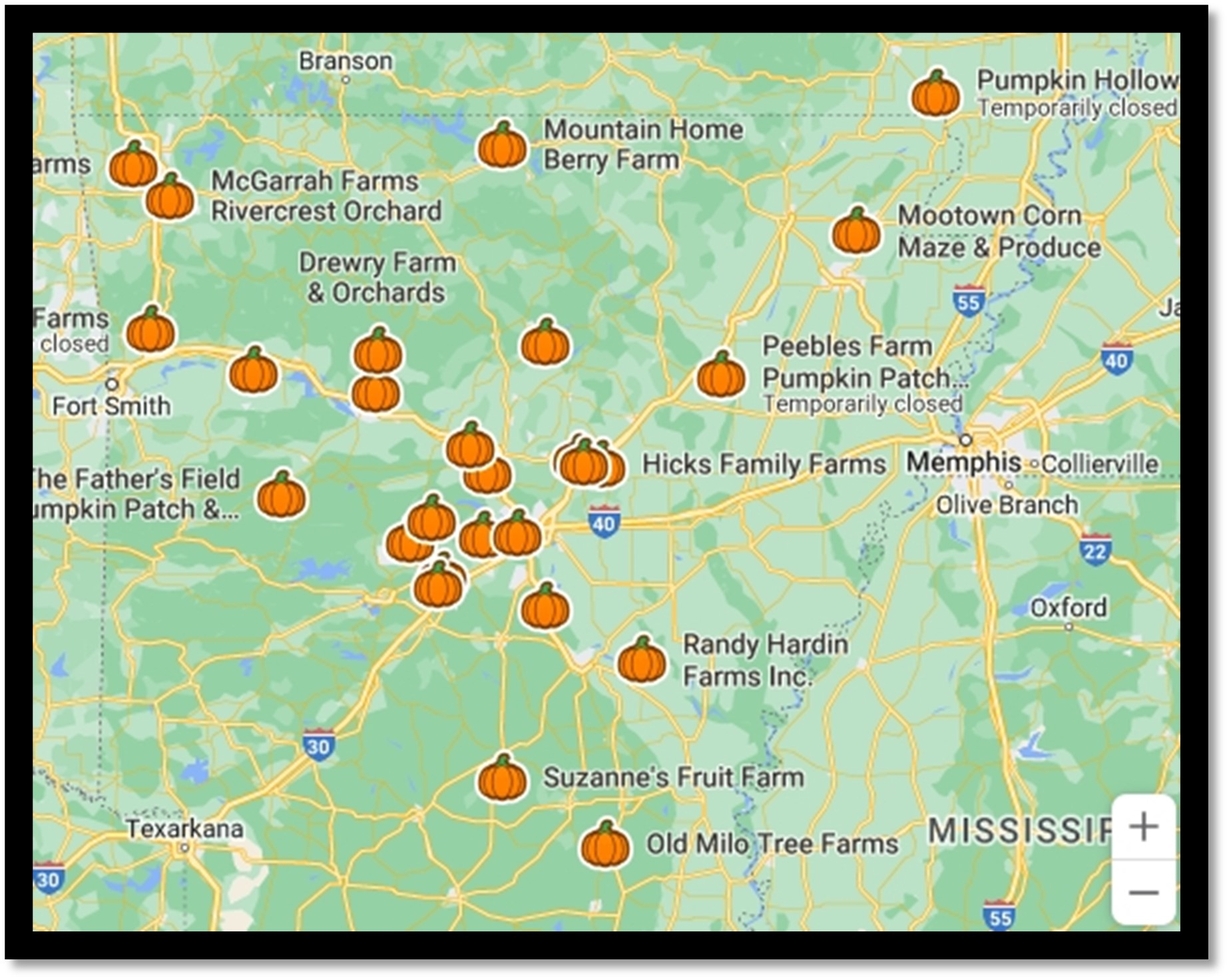 Figure 1 . A festive Google Maps image of some, but not all, of the pumpkin patches found in