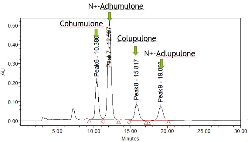 Figure 2: High Performance Liquid Chromatography chromatogram of alpha and beta acids in Cascade hop.