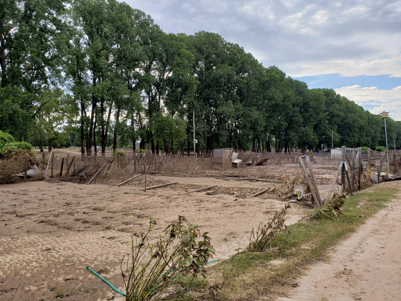 Inside the gates, the community gardens were a disaster. More than an inch of mud and silt had been deposited on every surface. Many fences had been torn town by force of water and debris that swept through. While some sheds and structures appeared intact, others were on their sides, in pieces, or just plain gone.