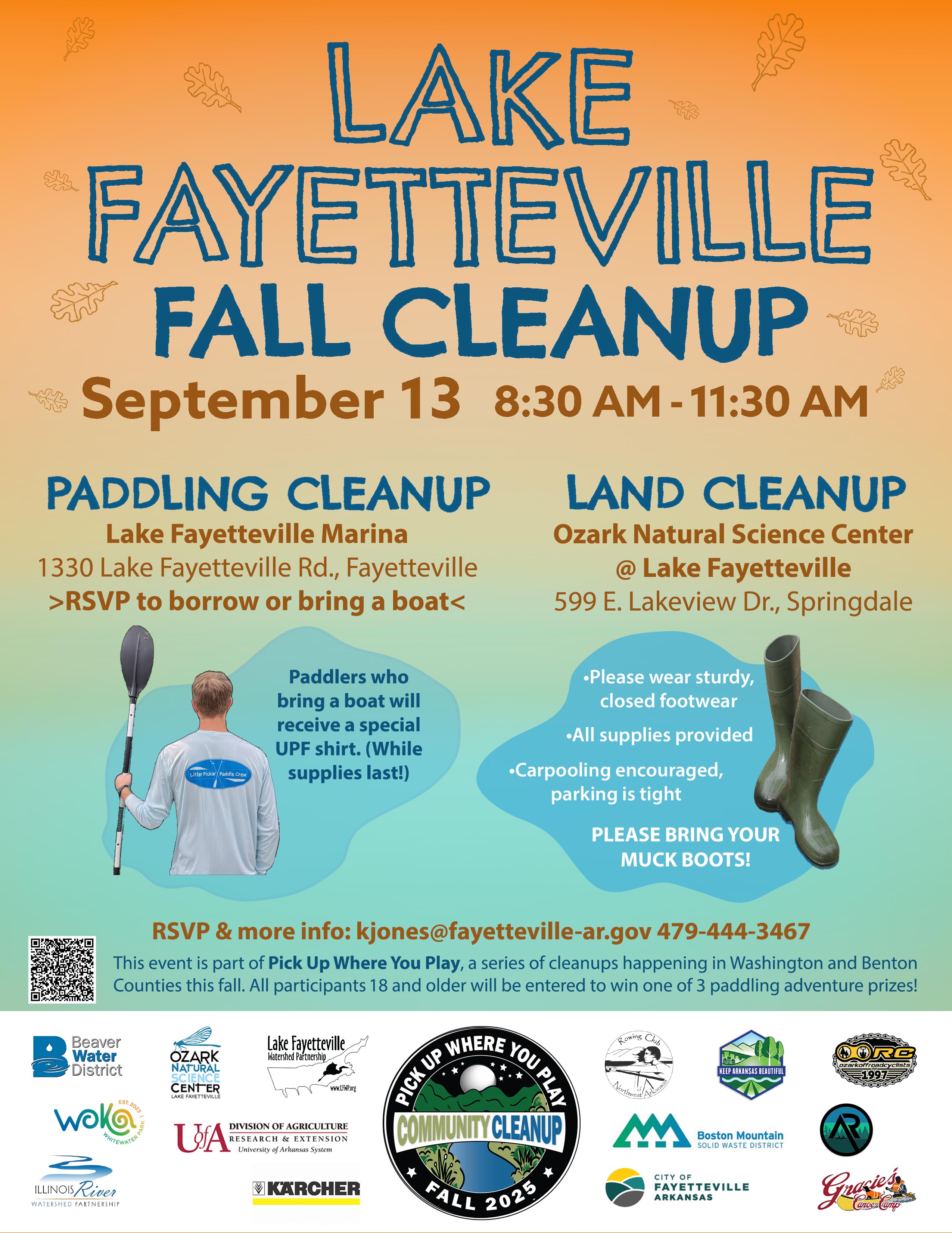The next two cleanups are scheduled for Saturday, Sept. 13 — one in Bentonville and the other at Lake Fayetteville. The cleanups are part of an ongoing outreach and education effort that has been a part of extension’s mission in the state for more than a decade.