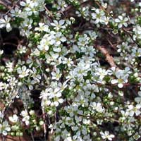 Of the spireas, this species is the earliest to bloom, usually flowering in the first half of March with forsythia. Spireas belong to the rose family and have the small, white, five-petaled blossoms characteristic of many members of that family. The blooms are about a quarter-inch across but borne in considerable profusion.