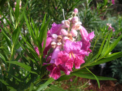 In drier climates, where rainfall is low and supplemental irrigation environmentally unwise, a plant like desert willow is an ideal choice for the garden. In wetter regions it can be grown, but will never become a standout in the summer landscape. It can be used as a specimen in the mixed border or as a small patio tree. Plants propagate easily by cuttings, so several clones are offered by nurserymen, primarily based on flower color differences.